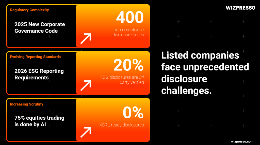 • Regulatory Complexity: The 2025 New Corporate Governance Code has driven up the number of non-compliance disclosure cases to 400 annually, reflecting the mounting burden on companies to accurately meet regulatory expectations.